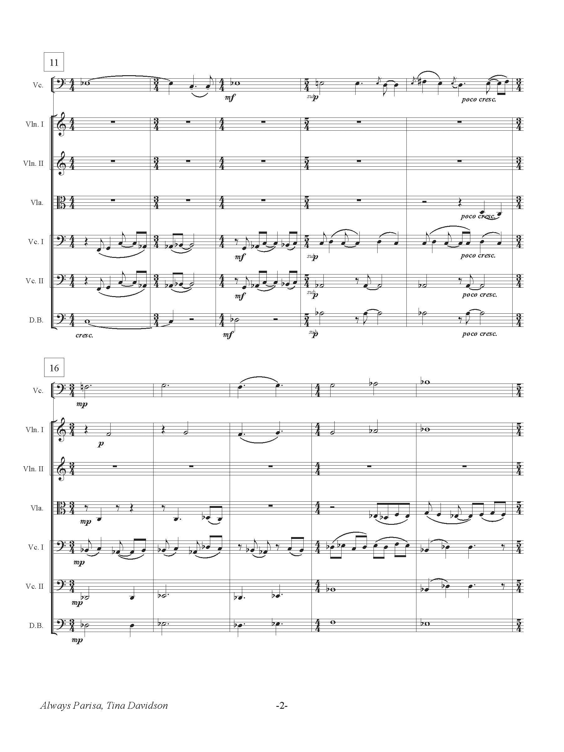Always Parisa was written for cellist Sara Male in memory of my beloved niece, Parisa who died at the age of 18 in 2009. Her name comes from ancient Persian and means fairy-like, or angelic face.