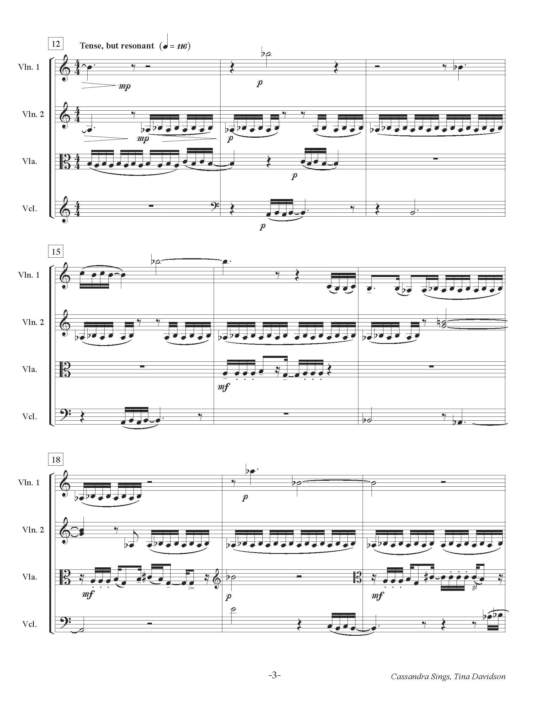 Commissioned by the Kronos Quartet and recorded by the Cassatt String Quartet, the piece “builds to a climax of tremendous richness, throwing out a soundscape that would seem to be much greater than merely four instruments can produce. An extended coda achieves a resolution of sublime dimensions.” (Fanfare)
