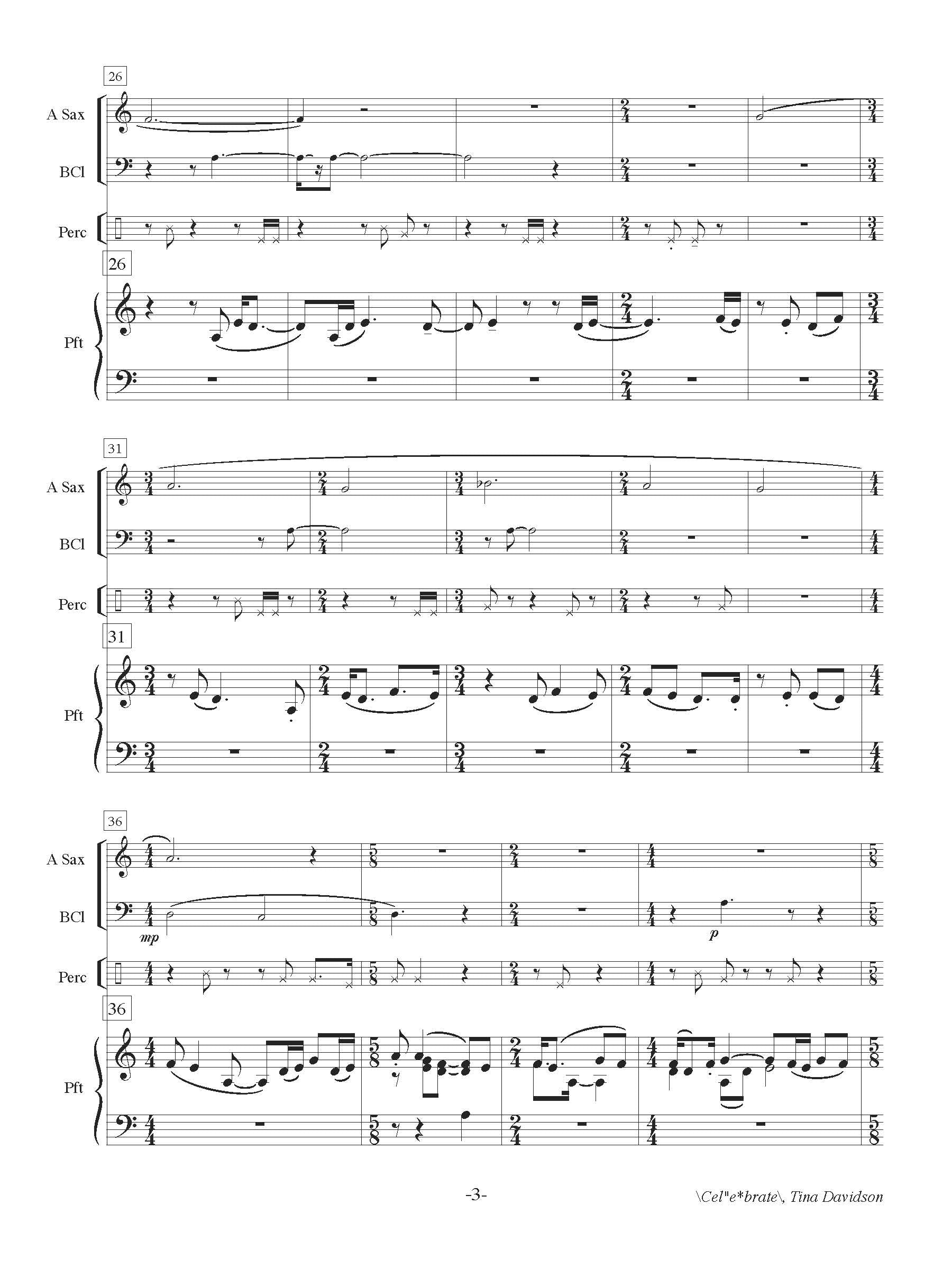 \Cel"e*brate\ was commissioned by the newEar Contemporary Chamber Ensemble in Kansas City, for their core ensemble on the occasion of their tenth anniversary.