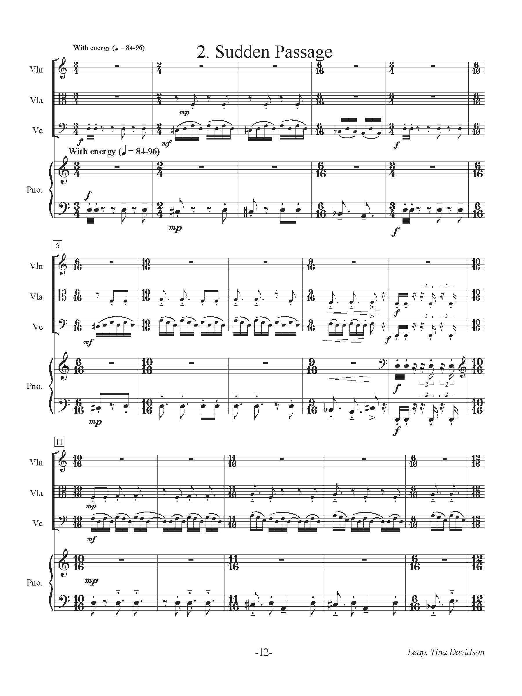 Leap, written for pianist Natalie Zhu and the Kingston Chamber Music Festival, was commissioned by Shoko Nioka, From the Middle English lepen and the Old English hlēapan, leap is defined as to make a large jump or sudden movement, usually from one place to another. When the pandemic hit, we found ourselves having leapt into a world unrecognizable, but not without its gifts.