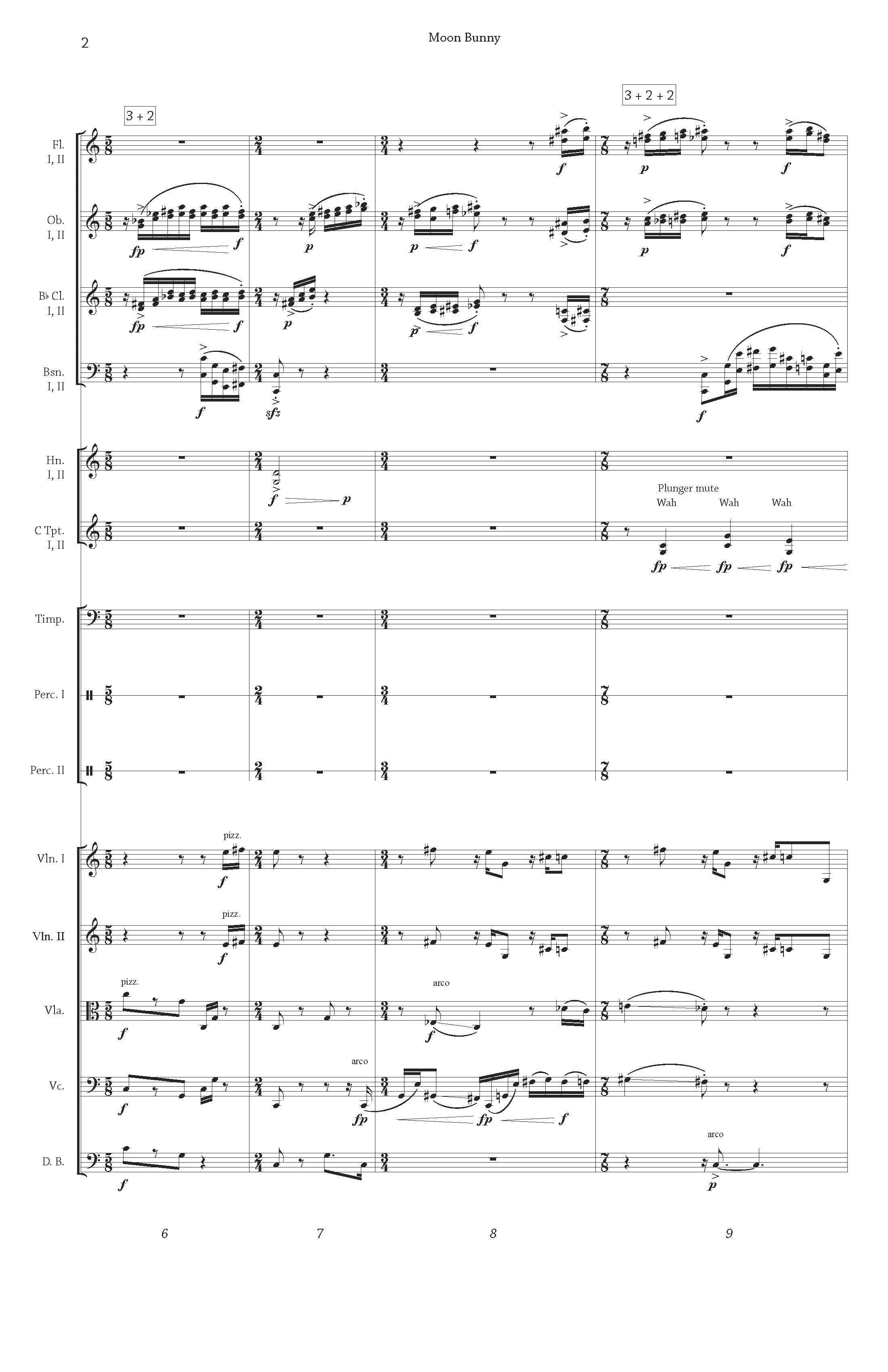To emulate Bach's ideas in his musical offering, I took a few melodic themes from the folk song and twisted it into several different textures and colors. While the original source material is simple and catchy, Moon Bunny transforms these easy-going lines into something larger, tangled, and ultimately, different. In retrospect, I suppose this piece brings forth an apt analogy of our two lives—first taking shape together with a simple tune sung in unison, then gradually evolving into more complicated entities that are unique but undoubtedly connected.