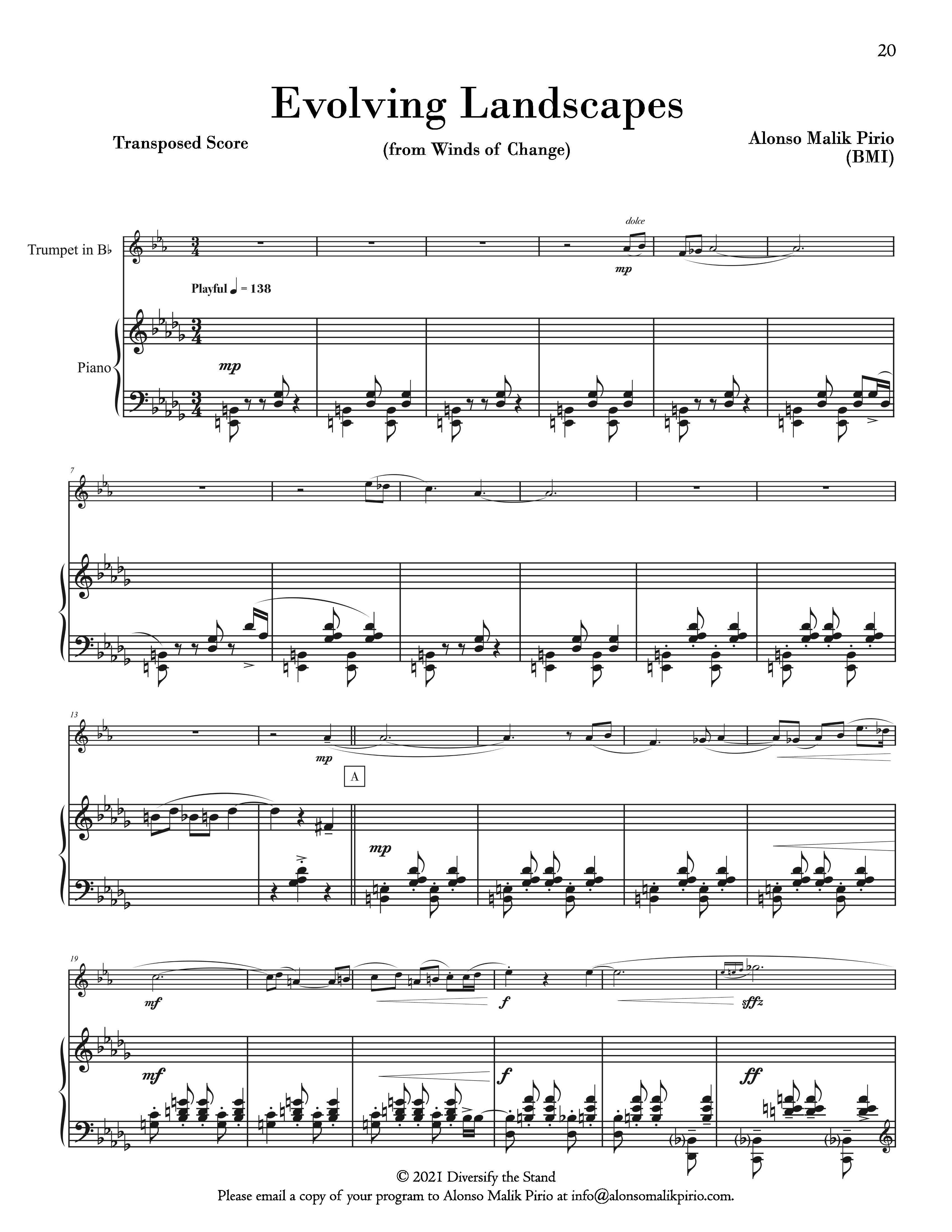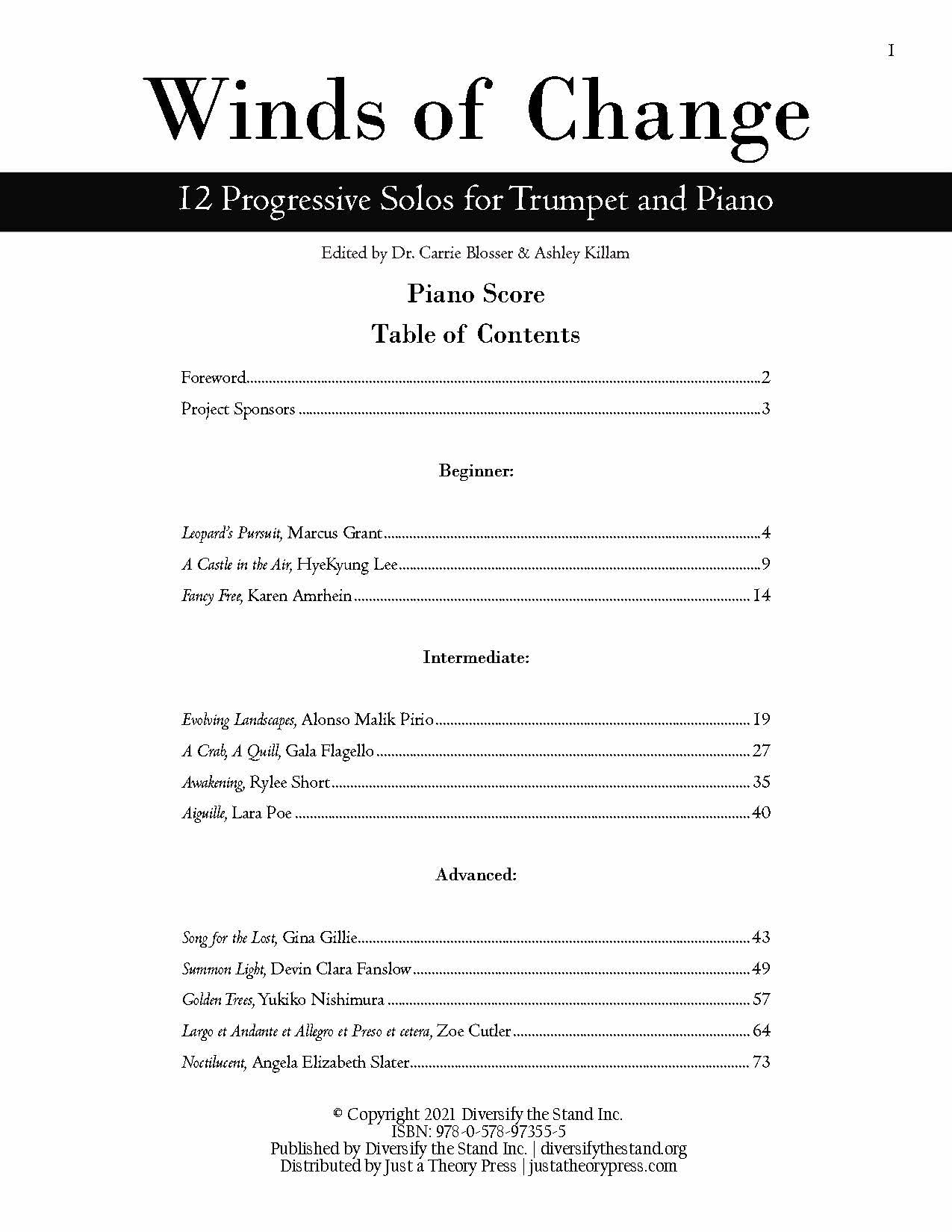 12 composers join Diversify the Stand for our first solo book entitled “Winds of Change”. Commissioned for this project, each composer gives the performer an opportunity to explore their musical voice in this progressive solo collection. This book provides accessible educational pieces by living composers for players of all skill levels. These works are appropriate for players in their first few years of study and moves progressively for more advanced players. Perfect for any brass soloist, these works are ideal for performance in any setting to include school solo & ensembles, contests, competitions, recitals, and more!