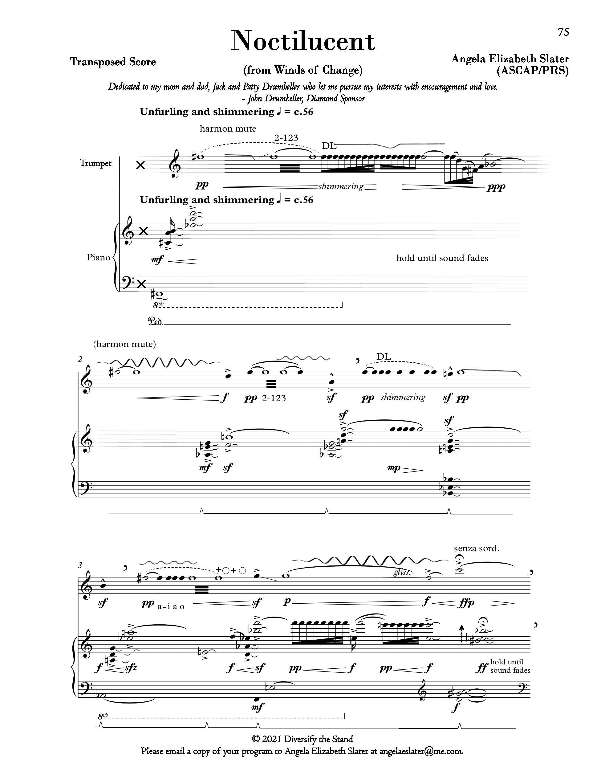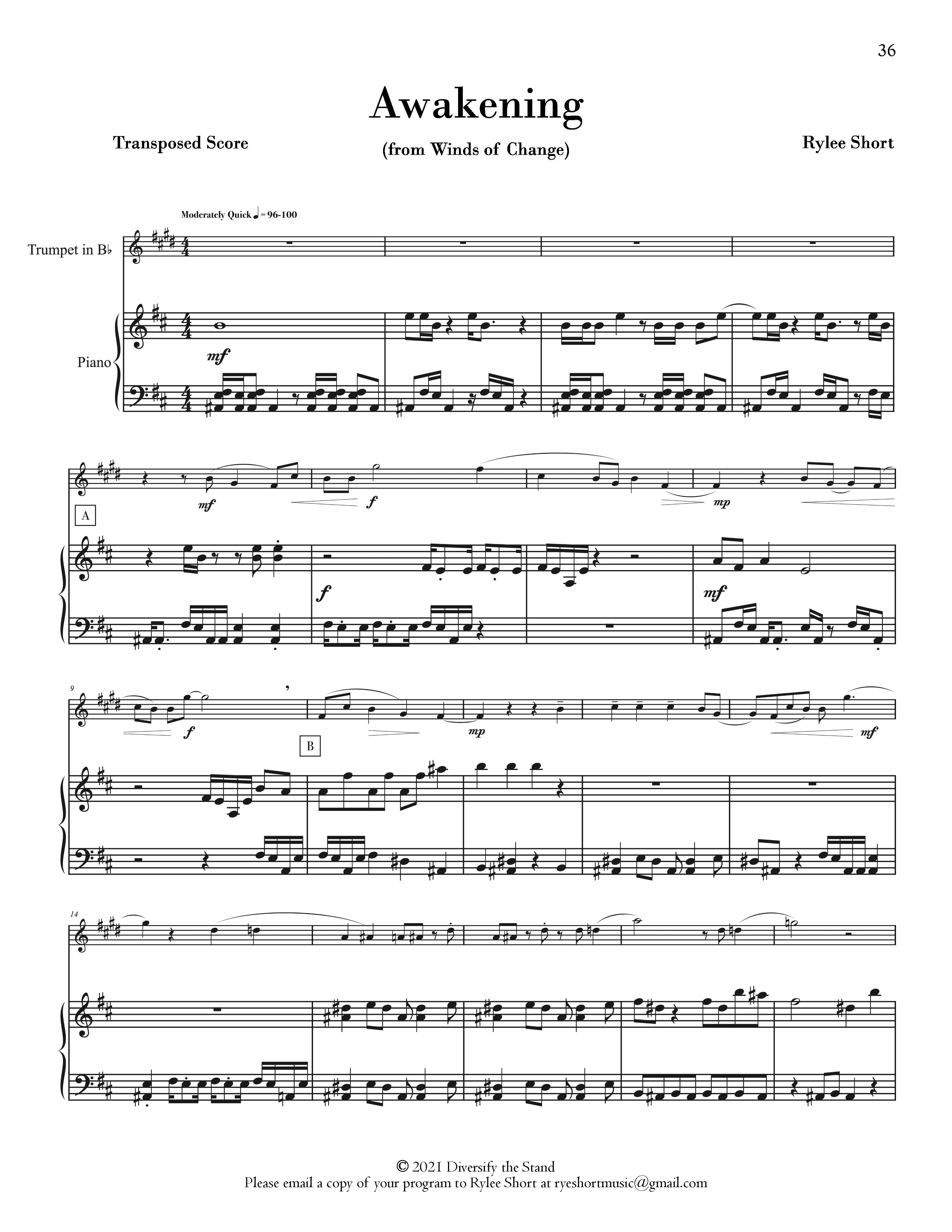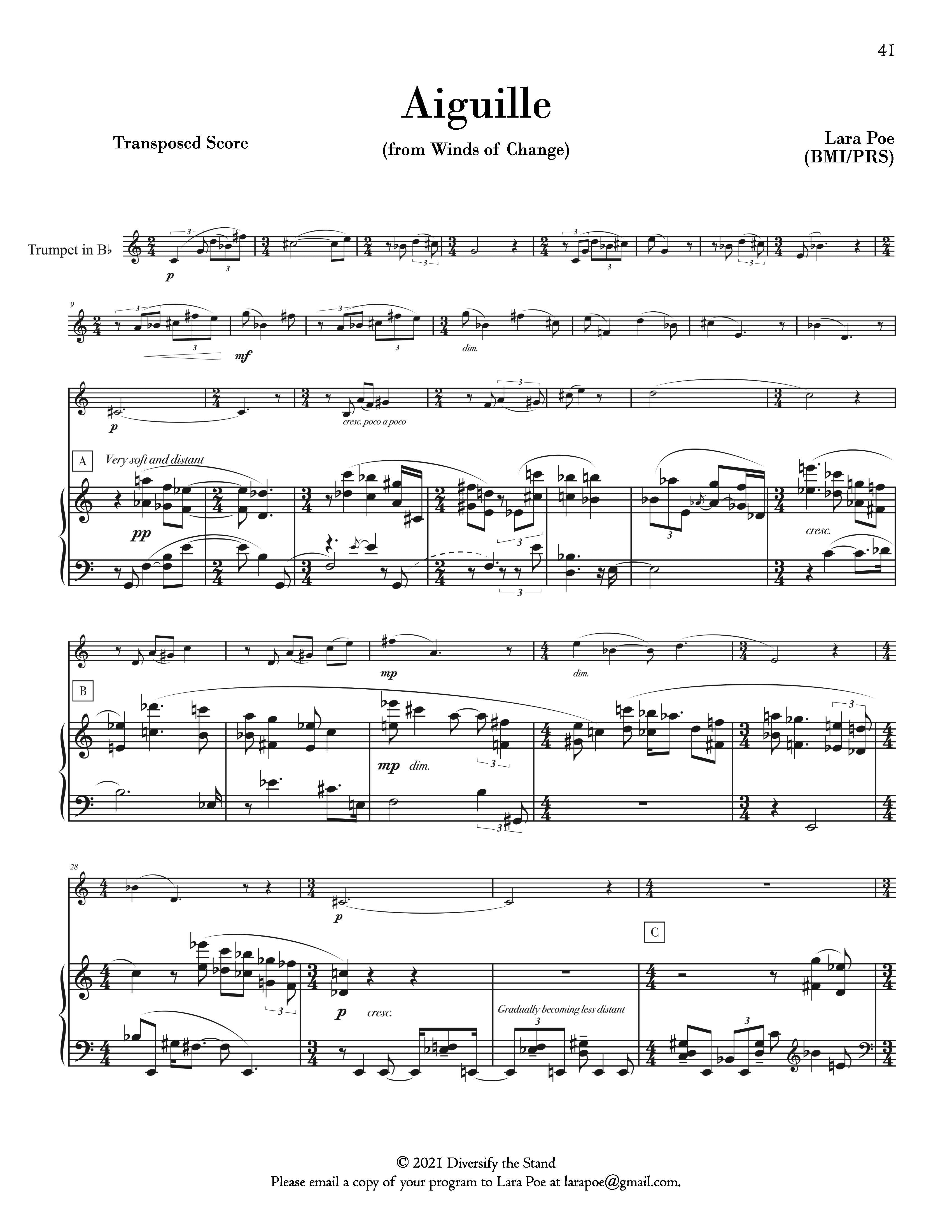 12 composers join Diversify the Stand for our first solo book entitled “Winds of Change”. Commissioned for this project, each composer gives the performer an opportunity to explore their musical voice in this progressive trumpet solo collection. This book provides accessible educational pieces by living composers for players of all skill levels. These works are appropriate for players in their first few years of study and moves progressively for more advanced players. Perfect for any trumpet soloist, these works are ideal for performance in any setting to include school solo & ensembles, contests, competitions, recitals, and more!