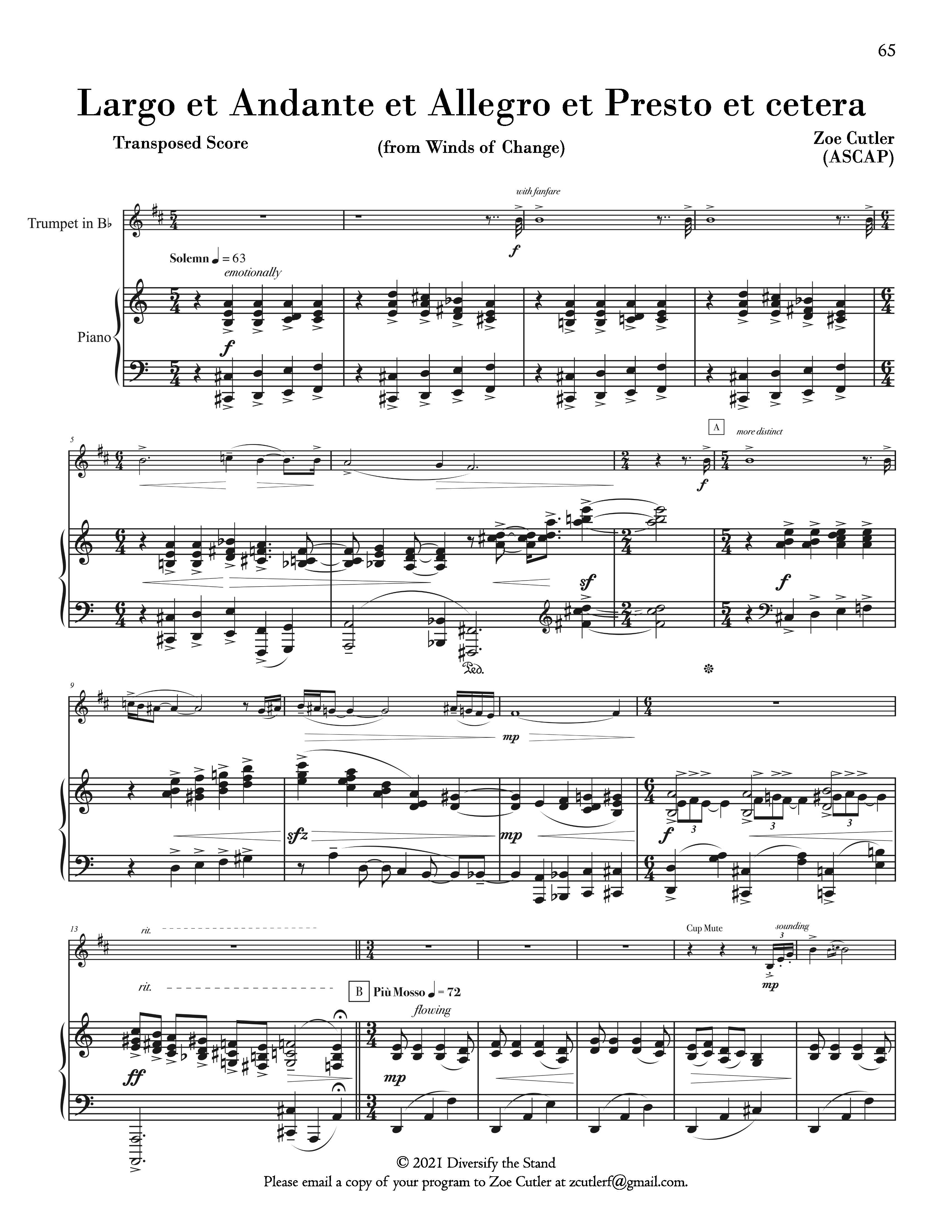Zoe Cutler, Largo et Andante et Allegro et Presto et cetera